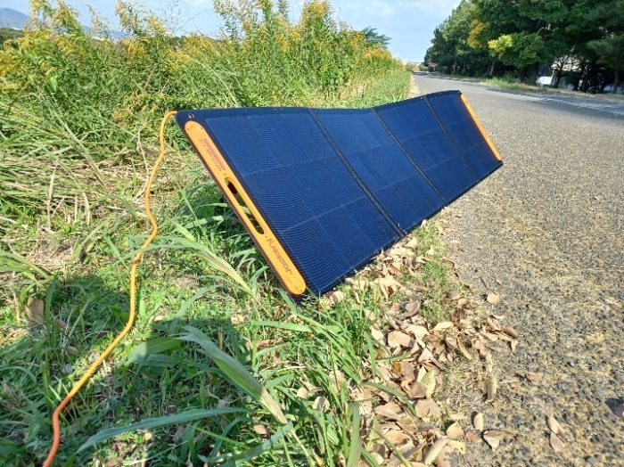 ソーラーパネルの充電は直射日光で、パネルに影がないことが何より大切です。