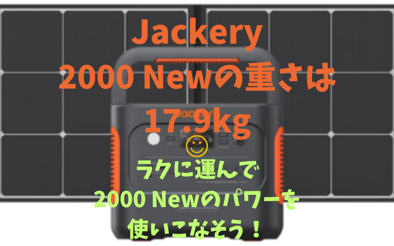 Jackery(ジャクリ)2000 Newの重さ17.9kgは、2000Whクラスで最軽量(2025.5時点)。