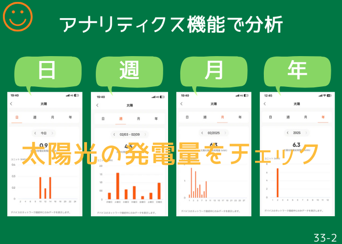 ②「ソーラー発電アナリティクス」の分析で充電バッチリ!